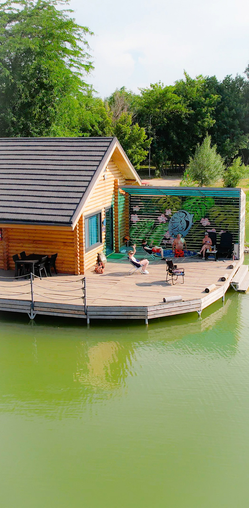 Уютный домик на воде, идеально подходящий для тех, кто ищет спокойствие и уединение. Здесь вы найдете все необходимые удобства для комфортного отдыха: просторные и светлые спальни, уютную гостиную, а также пирс с мини бассейном и потрясающим видом на озеро.